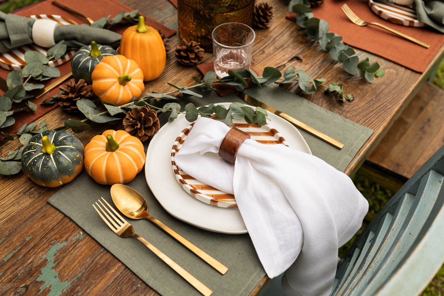 Enhance your table setting with a linen tablecloth that adds both festivity...