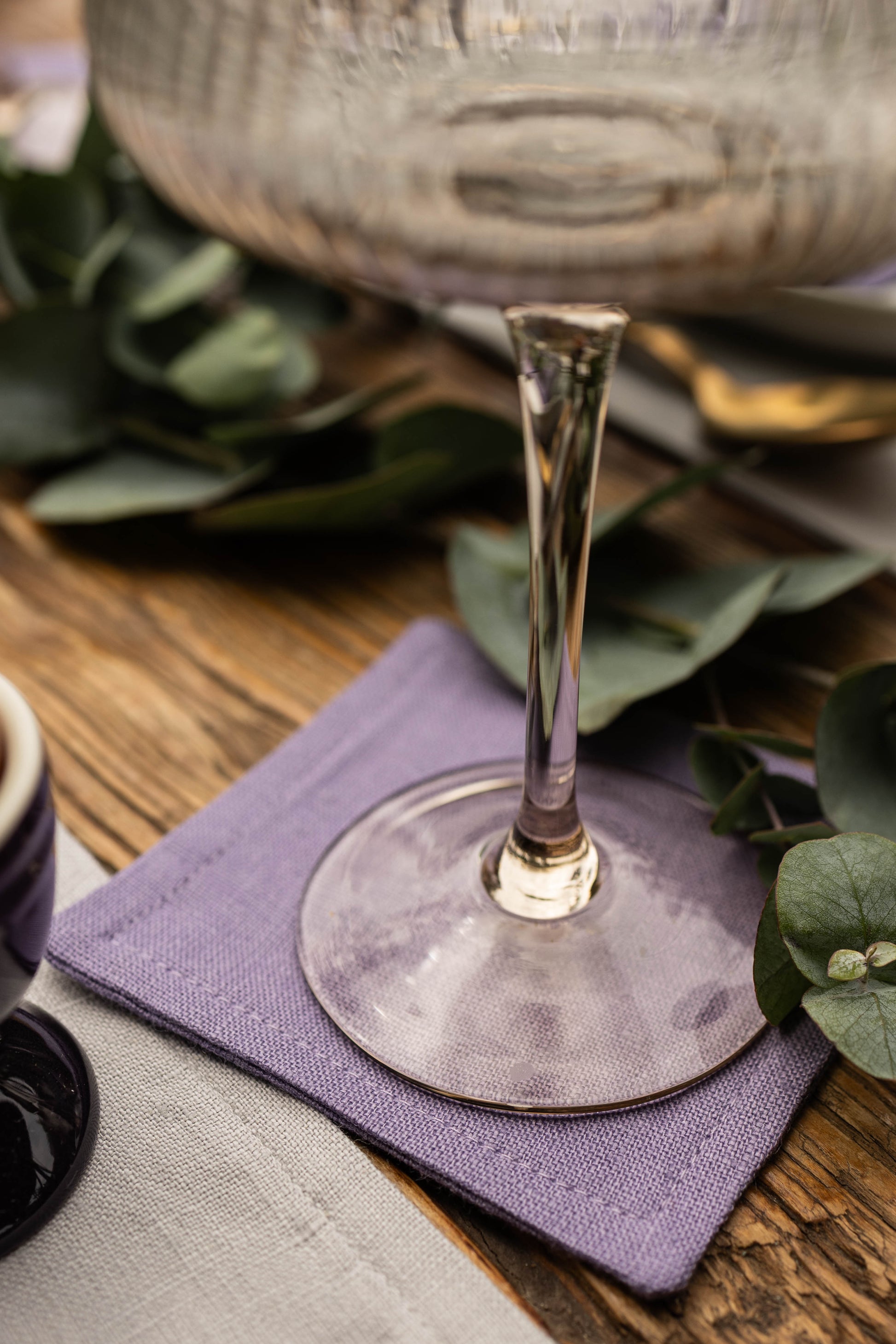 These 100% linen coasters protect your surfaces while absorbing condensation from cold water glasses to keep your table dry. Available in different colors. These coasters are both stylish and practical, great for everyday use!